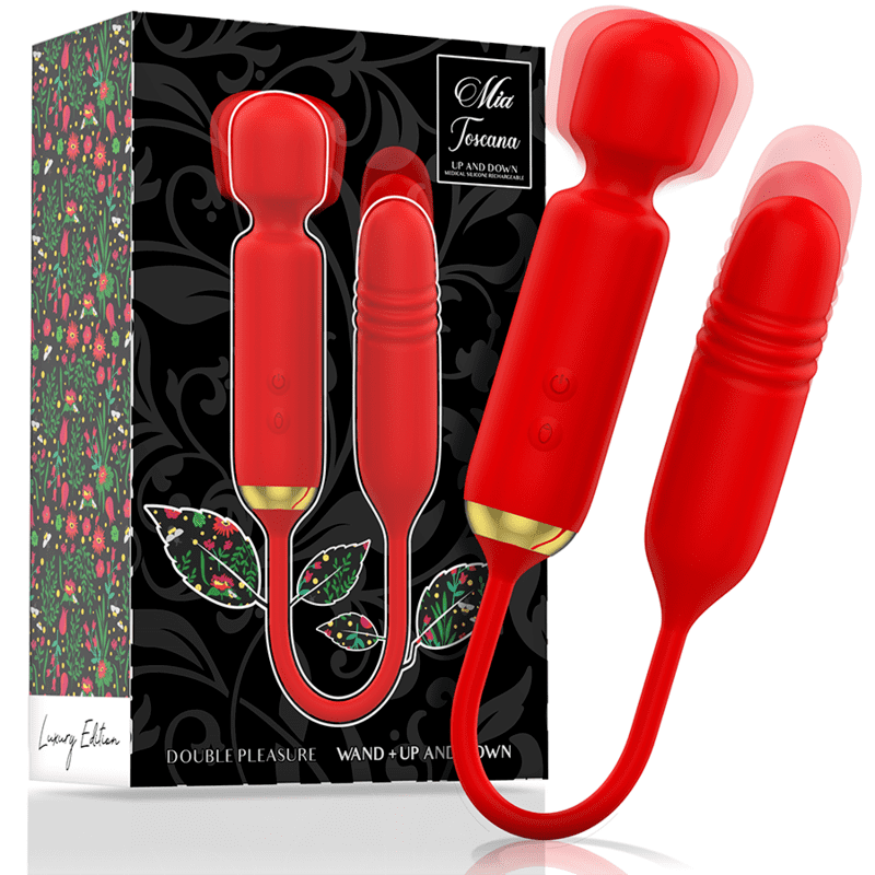 Laissez-vous envoûter par le MIA TOSCANA à double stimulation, l’accessoire qui réveille les désirs les plus profonds. Son wand vibrant caresse avec une puissance envoûtante, tandis que son stimulateur “va & vient” explore vos zones les plus sensibles avec un mouvement lent, vertical et irrésistiblement provocant.